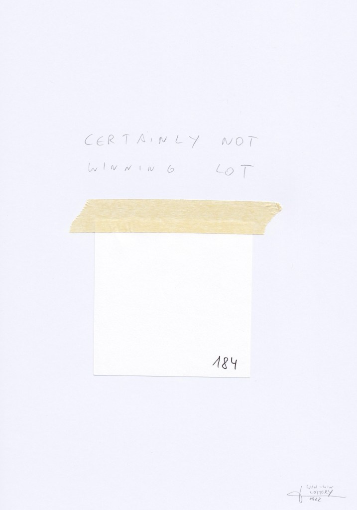 Hannes Egger has created the edition Certainly Not Winning Lot for the Win-Win Lottery. Ten lots will certainly not win, as they are withdrawn from the lottery.